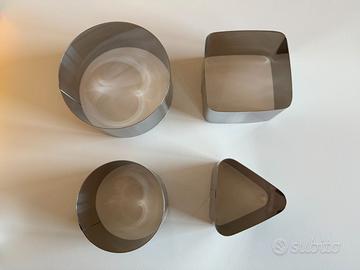 Creati per facilitare il taglio della pasta sfoglia, per fare biscotti di forme particolari, i coppapasta sono eccezionali anche per impiattare: si può dare forma a qualsiasi portata, preparare una cena completa dall’antipasto al dolce. Basta appoggiarli sul piatto da portata, riempirli, pressare leggermente e rimuoverli delicatamente: la pietanza assumerà la forma desiderata.
