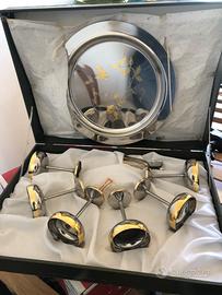 Set composto da 6 coppe, 6 cucchiaini ed un vassoio.