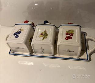 Set porcellana villeroy e boch nuovo mai usato, collezione cottage chatm . 3 barattolini con vassoio