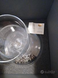 1 decanter in cristallo con elegante decorazione in argento 925‰ a motivo di vite e grappoli d’uva;