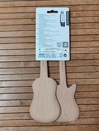 Vendo set originale Kikkerland “Rockin’ Spoons”, due cucchiai in legno a forma di chitarra, ideali per cucinare con stile o come idea regalo simpatica per musicisti e appassionati.