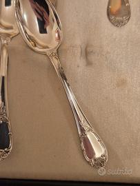Set 12 cucchiaini da caffè argento 800 finemente lavorati. Anni 60, mai utilizzati. Peso complessivo 128 grammi. Tutti punzonati sul retro