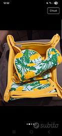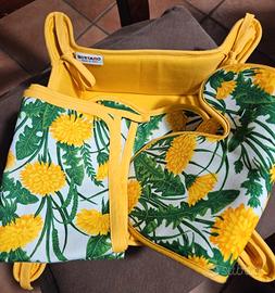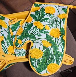 Set completo Bottaro, in cotone: 1 portapane, 1 presina a forma di farfalla, 1 guantone, 1 strofinaccio/canovaccio. Nuovo