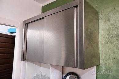 Vendo set completo da cucina professionale in acciaio inox, ideale per laboratorio, bar, ristorante o cucina industriale. Il set è composto da 3 elementi coordinati, solidi e funzionali, usati ma in buone condizioni generali, pronti all’uso. 1️⃣ Lavandino inox professionale Vasca ampia con sgocciolatoio Struttura robusta con ante scorrevoli Ideale per uso intensivo 💰 Prezzo: 380 € 2️⃣ Pensili inox (2 pezzi) Pensili da parete con ante scorrevoli Capienti e resistenti Perfetti per organizzare utensili e materiali 💰 Prezzo: 180 € (caduno) 3️⃣ Mobile / banco da lavoro Piano superiore in acciaio inox Struttura solida, ottimo come banco di appoggio o preparazione Spazio inferiore utilizzabile come deposito 💰 Prezzo: 150 € Tutti gli elementi sono in acciaio inox, facili da pulire e adatti ad ambienti professionali.