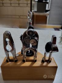 Ceppo in legno con apribottiglie, apri barattoli, schiaccianoci e schiaccia aglio. praticamente mai usati. vendo per inutilizzo