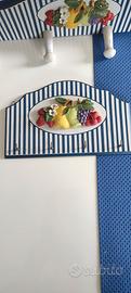 set 3 pezzi per cucina,stile shabby in legno con bellissimo rilievo di frutta porta rotolo e 2 porta strofinacci o presine