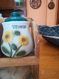 Set cucina caffè, zucchero e spezie con mobiletto in legno, mai usato