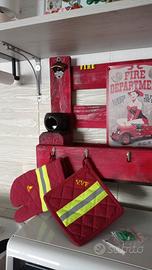 Set cucina guanto e presina Pompieri artigianale. Unico esemplare. Nuovo mai usato. per un regalo a un amico vigile del fuoco o per la vostra cucina. vendo