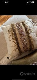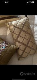 Set di 4 cuscini d’arredo Bagnaresi casa. 100% seta. Made in Italy. Vendibili anche singolarmente al prezzo di €80 ciascuno. Misure 38x38 (quadrati) e 38x23 (rettangolari).