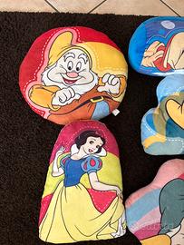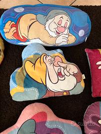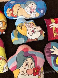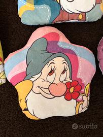 Set Cuscini Disney - Biancaneve e i Sette Nani - Vintage/Collezione 📝 Descrizione Vendo bellissima collezione di cuscini sagomati dedicati al classico Disney "Biancaneve e i Sette Nani". Perfetti per arredare una cameretta, per amanti del mondo Disney o collezionisti. Il set comprende 7 cuscini con grafiche vivaci e colorate: Biancaneve (forma a campana) Dotto (tondo) Brontolo (rettangolare) Cucciolo (forma a cuore) Pisolo (forma a stella) Eolo (forma sagomata) Gongolo (forma a rullo/ovale) Caratteristiche: Stato: Ottime condizioni, colori ancora molto brillanti e stampe integre. Materiale: Tessuto morbido al tatto (tipo microfibra/velour). Dettagli: Ogni cuscino ha una forma unica che segue il personaggio o un tema grafico. tutto il set euro 40 singolarmente 8/10 euro in base al cuscino