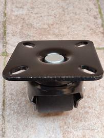 SET DA 4 RUOTE marca CPROSP. Caratteristiche (prese dalla descrizione del sito in cui sono state comprate): diametro rotelle 63 mm e larghezza 50 mm con freni - altezza totale 100mm - lunghezza 15 mm - placchetta 100 mm di lato - distanza tra i fori 80 mm - carico massimo 1500 KG - possono ruotare di 360° - adatte a mobili pesanti, da lavoro e per uso Industriale - colore nero - struttura in acciaio e ruote in nylon. Comprate per un mobiletto, ci siamo resi conto un po’ in ritardo che sono un po’ “troppo”: sono pesanti e adatte per mobili molto pesanti, mobili o bancali da officina e cose del genere. Più da officina che per uso domestico. Mai usate. Complete di viti e bulloni.