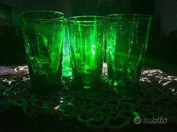 Vendo bellissimo set da 6 Bicchieri Vintage Verde Empoli - Anni '30/'40 - Artigianali (Uranium Glass)