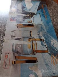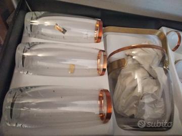 Eleganti set anni '70/80'per long drink con bicchieri originali Bohemia Cristal (Made in Czechoslovakia), mai usati e ancora nella confezione originale. Ogni bicchiere ha un raffinato bordo dorato, perfetto per apparecchiature classiche o collezionisti di vetri vintage.