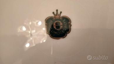 servito composto da 6 piattini + vassoio tondo con decorazioni floreali in porcellana vintage di Limoges con bordo in oro