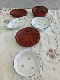 In ceramica inserita in cestini di rattan.