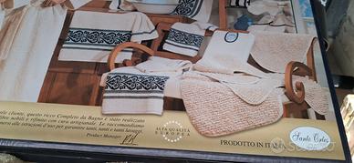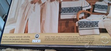 Ser da bagno vintage corredo uomo donna: in spugna idrofila,lavorazione jaguard,puro cotone,bilancia asciugamani,tappeti,pantofole,accappatoi,porta saponetta,spugne.