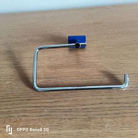 VENDO IN BUONE CONDIZION SET DA BAGNO IN ACCIAIO CON PIASTRINE COLORATE IN AZZURRO, COMPOSTO DA PORTA SALVIETTA PER BIDET L.20 CM., E PORTA CARTAIGIENICA L.15 CM. INOLTRE SEMPRE NEL SET VI E' UN ALTRO PORTA CARTA IGIENICA DI ALTRA LINEA. VERA OCCASIONE
