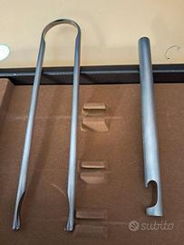 Apribottiglie e prendi ghiaccio in acciaio satinato, nuovi, mai usati, scatola originale (leggermente segnata dal tempo),
