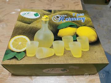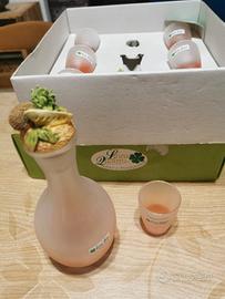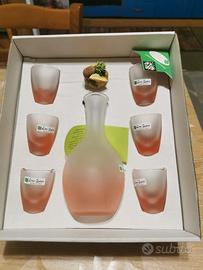 Il set è composto si 7 pezzi: decanter rosa satinato con tappo e 6 bicchierini
