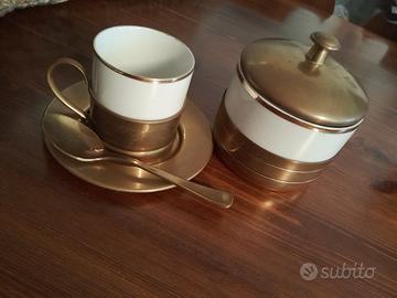 Set composto da vassoio diametro 42 con ripiano in vetro asportabile, 6 tazzine con piattini, 6 cucchiaini e zuccheriera porcellana Monopoli. Fatto a mano Corvida Italia No spedizione