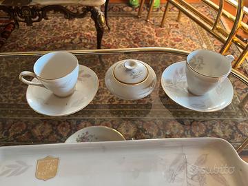 Set da caffe composto da 2 tazzine con piattino, zuccheriera e vassoio (lunghezza circa 33 cm) Marchio: KMP Krister Germany