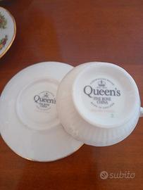 Vendo set di tazzine con piattino e zuccheriera e piattino in porcellana. Mai usate