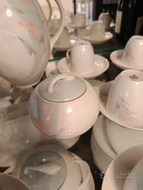 Comprende 12 tazzine, 12 piattini, una lattiera, una teiera, una zuccheriera