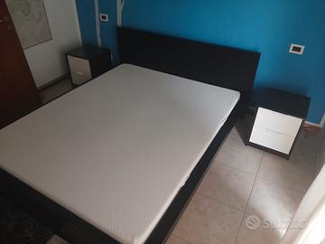 vendo letto matrimoniale, materasso 2 anni di vita, comodini, rete con doghe legno. Smontaggio e trasporto a carico del compratore.