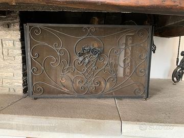 Elegante set da camino d'epoca, caratterizzato da raffinati decori floreali con rose lavorate artigianalmente.
