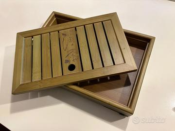 Vendo Set da cerimonia cinese del Te Pu-Erh completo di : Vassoio in bambù, teiera in ghisa, filtro, tappetino e punteruolo per il te. Ottime condizioni, praticamente nuovo, come da foto. Zona ritiro Castelverde di Roma.