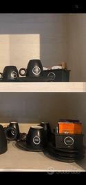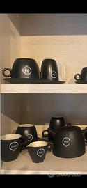 Vendo set da collezione Caffè Verniano Il set è coposto da - 6 tazzine espresso - 2 tazze cappuccino - 2 tazze cioccolata - 2 tazze da tè (mug) - 1 teiera - 1 vassoio - 2 lattiere 1picc 1grande - 2 portazzucchero small - 1 porta togliali - 1 vassoio rettagolare small - 1 grembiule long apron