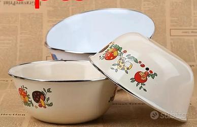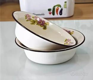 Ciotole in Smalto Resistenti con Motivo Floreale Vintage - Ciotola Rotonda per la Conservazione della Freschezza di Frutta, Verdura e Alimenti Secchi - Lavabili in Lavastoviglie, Riutilizzabili per Scuola, Campeggio, Picnic - Adatte all'Esterno, Ideali per Natale, Pasqua, Hanukkah e Ringraziamento