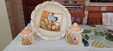 vendo set da cucina in caramica, nuovi, mai usati , di marca Thun, composto da un Orologio, un centro tavola, una biscottiera, una zuccheriera e un porta caffè.