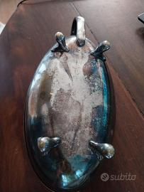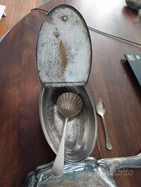 Set da cucina, ciotola per antipasto con vetro interno e cucchiaio di portata. Periodo presumibilmente inizio 900.