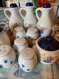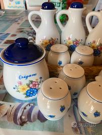 Set misto da cucina (olio sale e pepe) più cestino, per un totale di 11 pezzi.