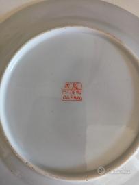 Elegante e raffinato servizio da dolce giapponese vintage anni '60, realizzato in fine porcellana, con profili in oro zecchino. Le superfici accolgono decori tipici giapponesi, simbolo dell' estetica nipponica. Ottime condizioni. Diametro piatto grande cm. 23; diametro piatto piccolo 17 cm.