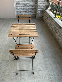 Set completo di tavolino e due sedie in legno da esterno Ikea. Il set e’ in condizioni ottime, completamente richiudibile e funzionale. Ritiro a mano