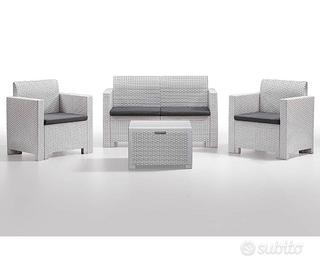 2 sedie 1 divano 1 tavolino apribile e cuscini.