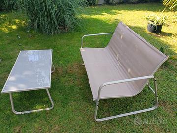 Set Relax, 5 elementi (2 poltrone, 1 divanetto e 1 tavolino), linee morbide e design minimal. Colore neutro che sta bene dappertutto, struttura compatta e maneggevole per gli spostamenti last minute