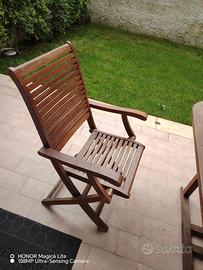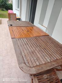 Set da giardino in legno composto da 6 sedie e tavolo allungabile 180/260 * 110. Presenta una discromia nella parte allungabile e diversi altri difetti visivi dovuti all'usura
