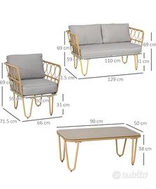 SET DA 4 PEZZI: Questo elegante set da giardino in stile boho chic è composto da un divano 2 posti, 2 poltrone e un tavolino da caffè. La soluzione perfetta per un momento di relax in compagnia in ogni spazio all'aperto.