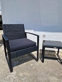 Salotto da giardino moderno. Include 2 poltrone e tavolino con top in vetro. Mai usato.
