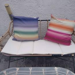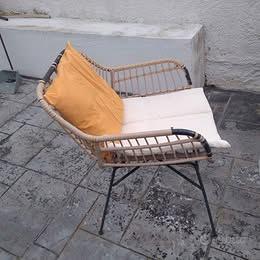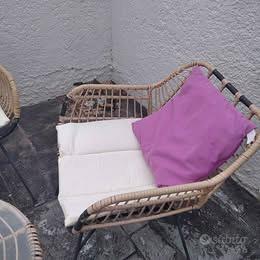 Set da giardino in ferro e cordura sintetica da rimuovere, la struttura e buono stato non arrugginito ,si può usare con i cuscini, composta da divanetto, 2 poltrone e un tavolino con base in vetro.Ottimo per esterno o interno.Ritiro ad Anzio...