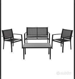 Vendo come da foto set da giardino in metello colore antracite conposto da panca con 2 posti ,2 sedie e tavolino ottime condizioni utilizzato pochissime volte