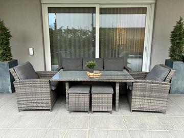 Set da giardino tavolo + divano + poltrone