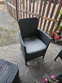 Set da giardino composto da due poltroncine con cuscini e tavolino che si toglie la base sopra ed é a contenitore,sono solo impolverato