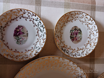 Set piatti vintage da pasticceria originali anni 50 Hutschenreuther con motivi e bordi dorati 6 + 1