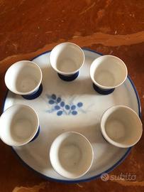 Set da sake in ceramica con motivo floreale. 1 bottiglia 6 tazze 1 vassoio