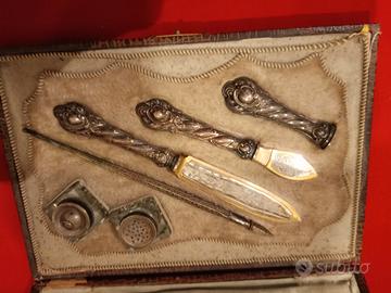 antico set da scrivania liberty in argento