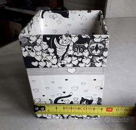 Set da scrivania formato da portapenne e sottomano con molletta per fogli A4. Fatto a mano con carta a soggetto gatti bianco/nero. Usato in buone condizioni.